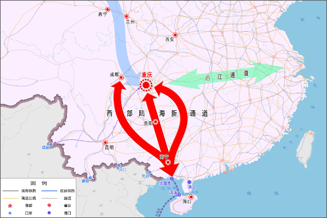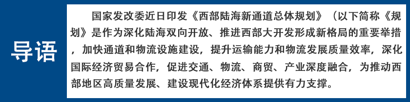 西部陸海新通道位于我們西部地區(qū)腹地,北街絲綢之路經(jīng)濟(jì)帶,南連21世紀(jì)海上絲綢之路,協(xié)同銜接長江經(jīng)濟(jì)帶,在區(qū)域協(xié)調(diào)發(fā)展格局中具有重要戰(zhàn)略地位。